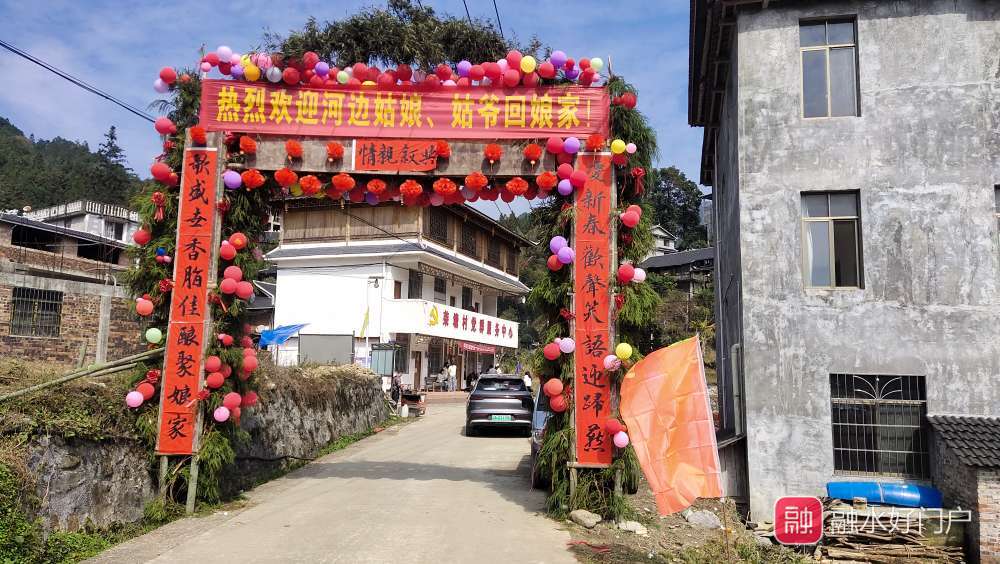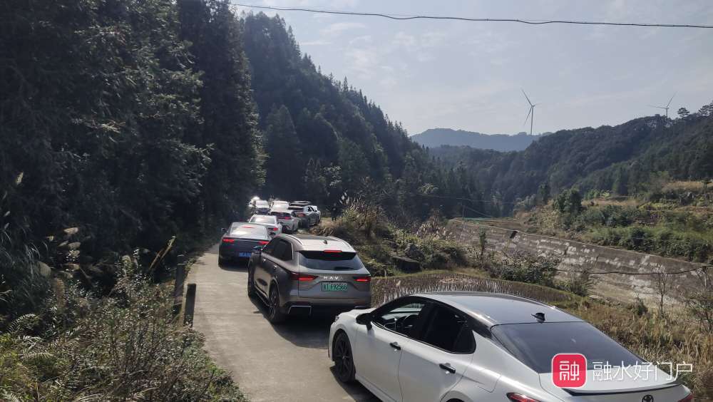 路很好走,一半以上是高速和二级路,临近目的地才是几公里的乡村道路,全程几十分钟就到了。才到村口寨门,我就理解了呆呆杀猪宴为什么会那么火:来赶坡会的车辆络绎不绝,多数是外地口音的游客。车流在几公里的村道里缓慢挪动、让行,那可真是一个堵啊