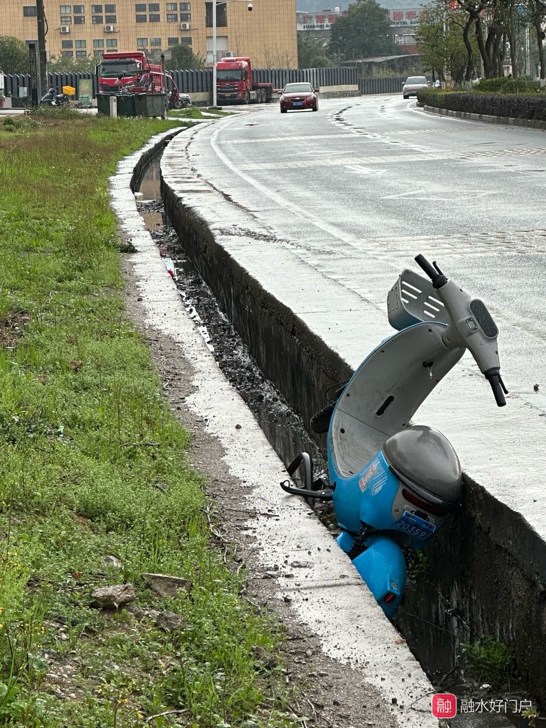 学士澜庭路边惊现不文明一幕:共享小蓝车被人丢进沟里,好好的公共出行工具,遭此粗暴对待,实在让人气愤