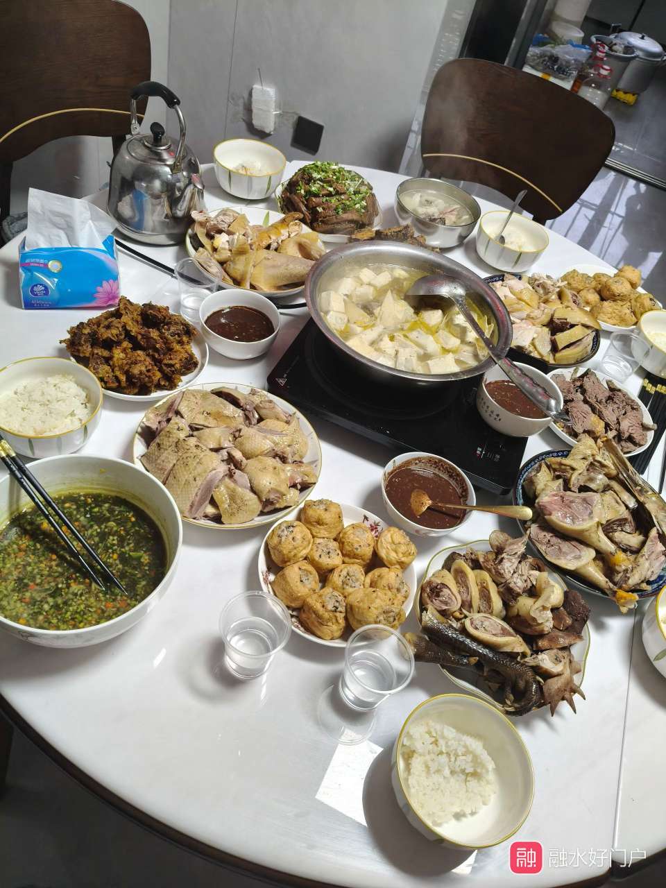 一桌五盘鸡鸭