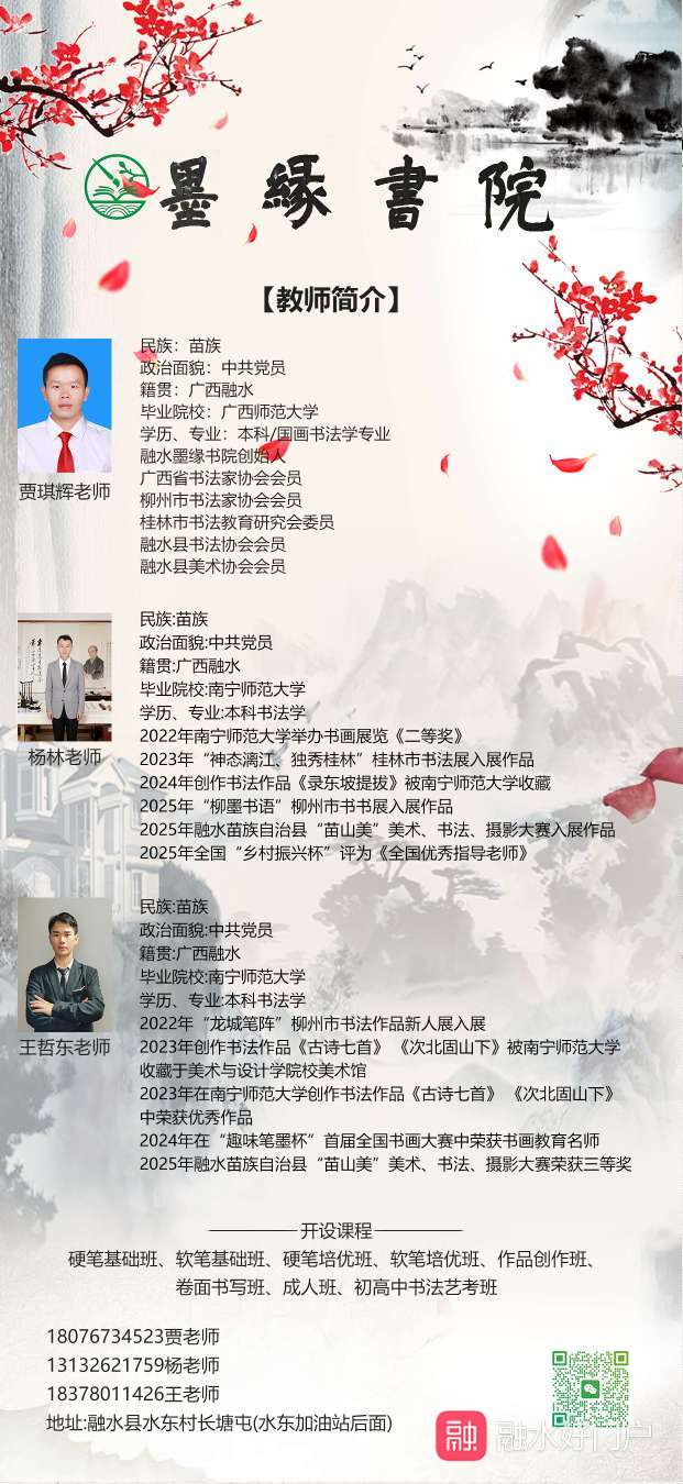 融水墨缘书院是融水唯一一家全科班出身、师资最全面、办学最有经验的书法教育机构!