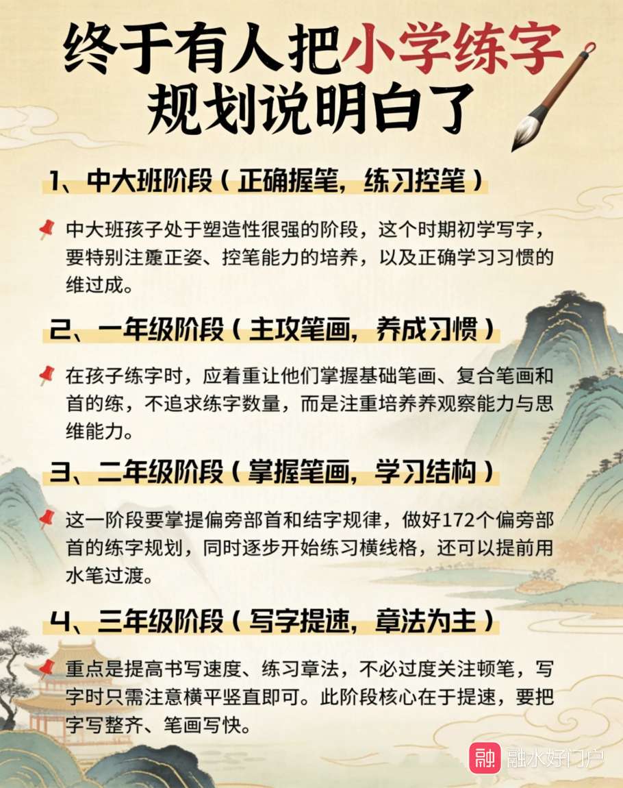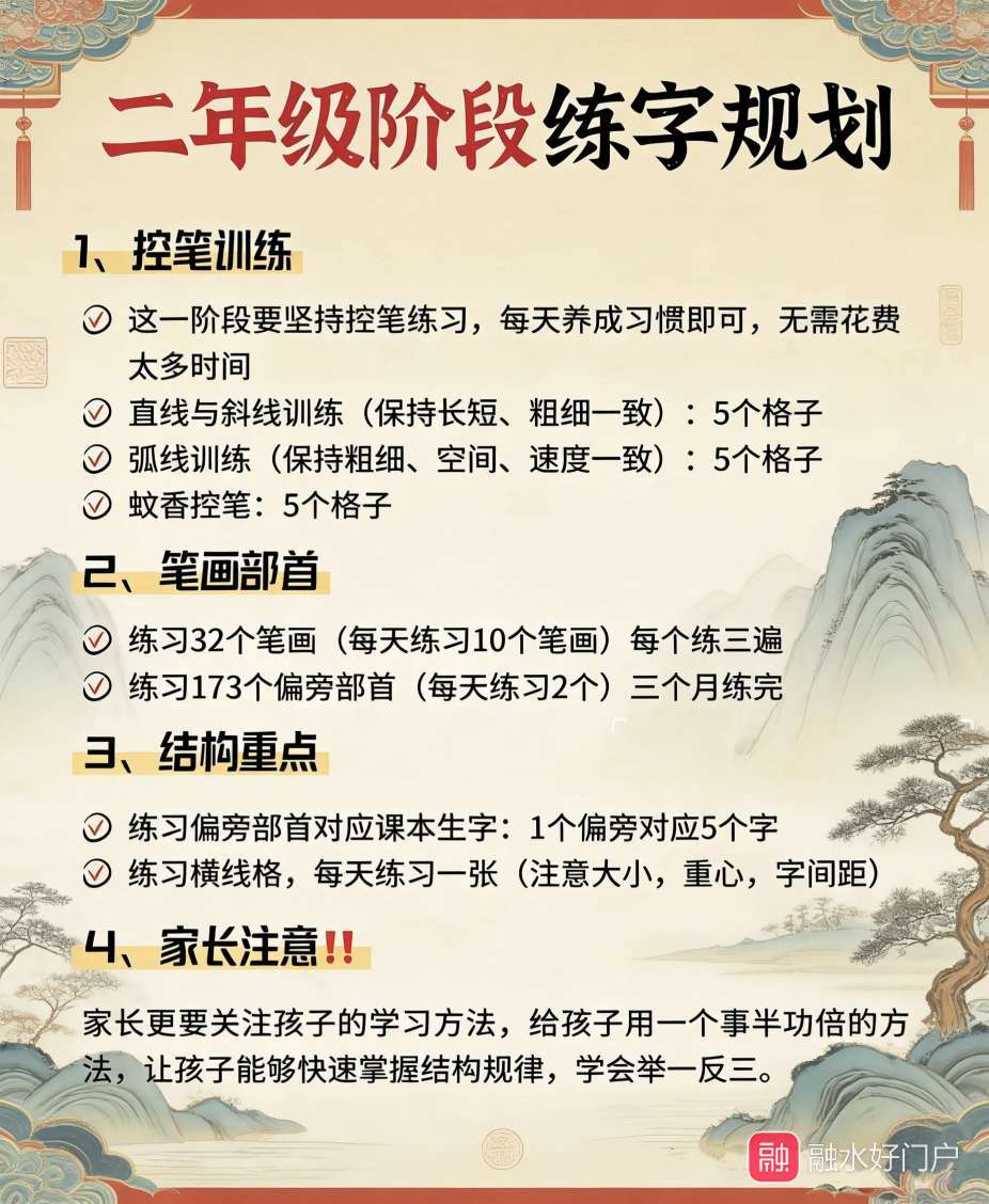 家长必看:4年阶梯式硬笔练字计划,让孩子从大班到三年级轻松掌握书法技巧!