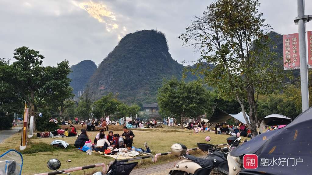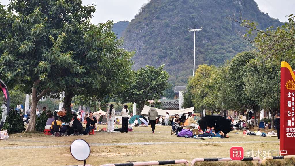 周末融水各大草坪挤满了露营野餐的人~太热闹了!