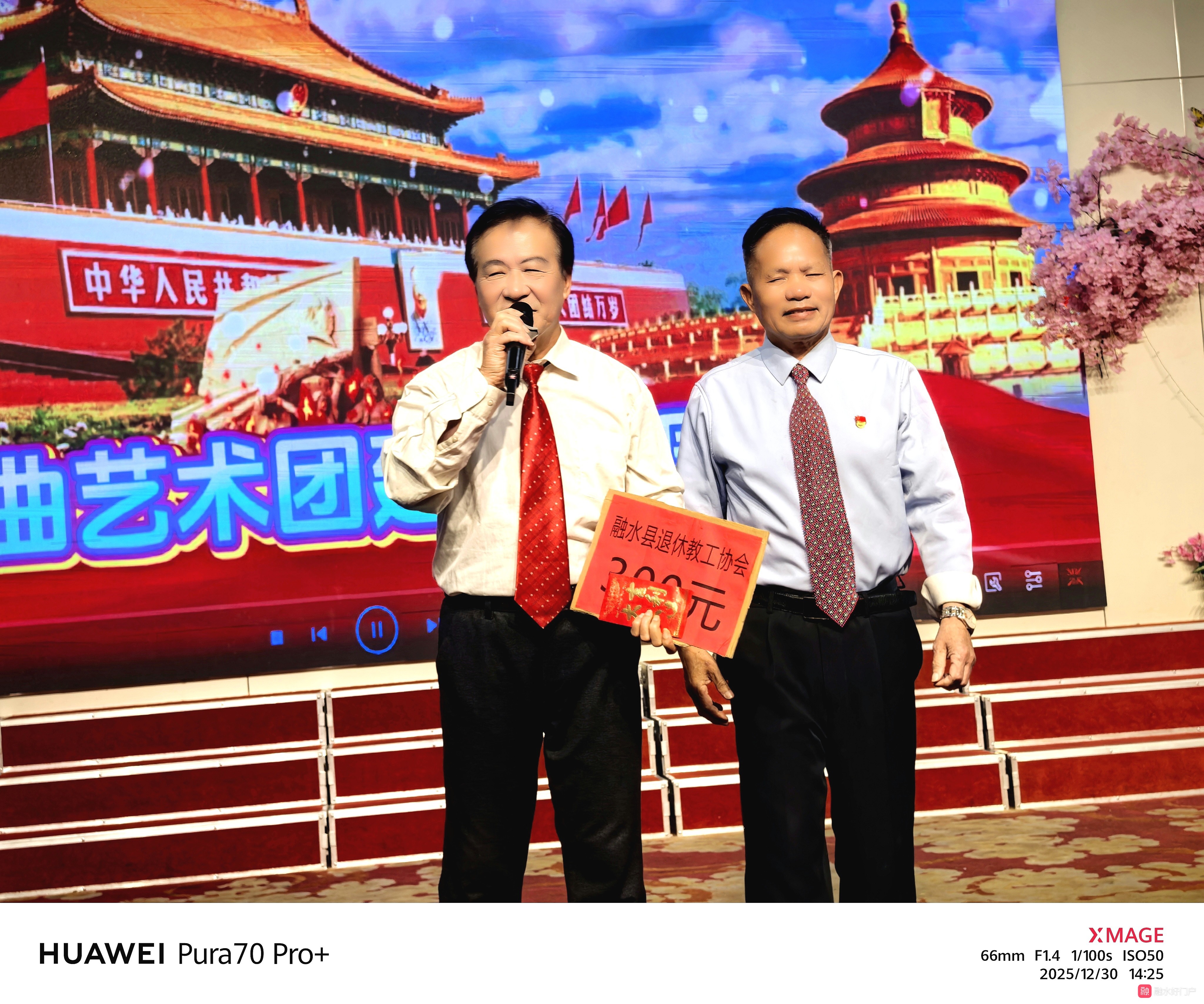 县退休教工协会领导给金曲艺术团祝福红包。