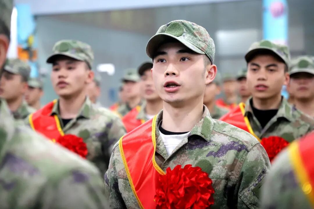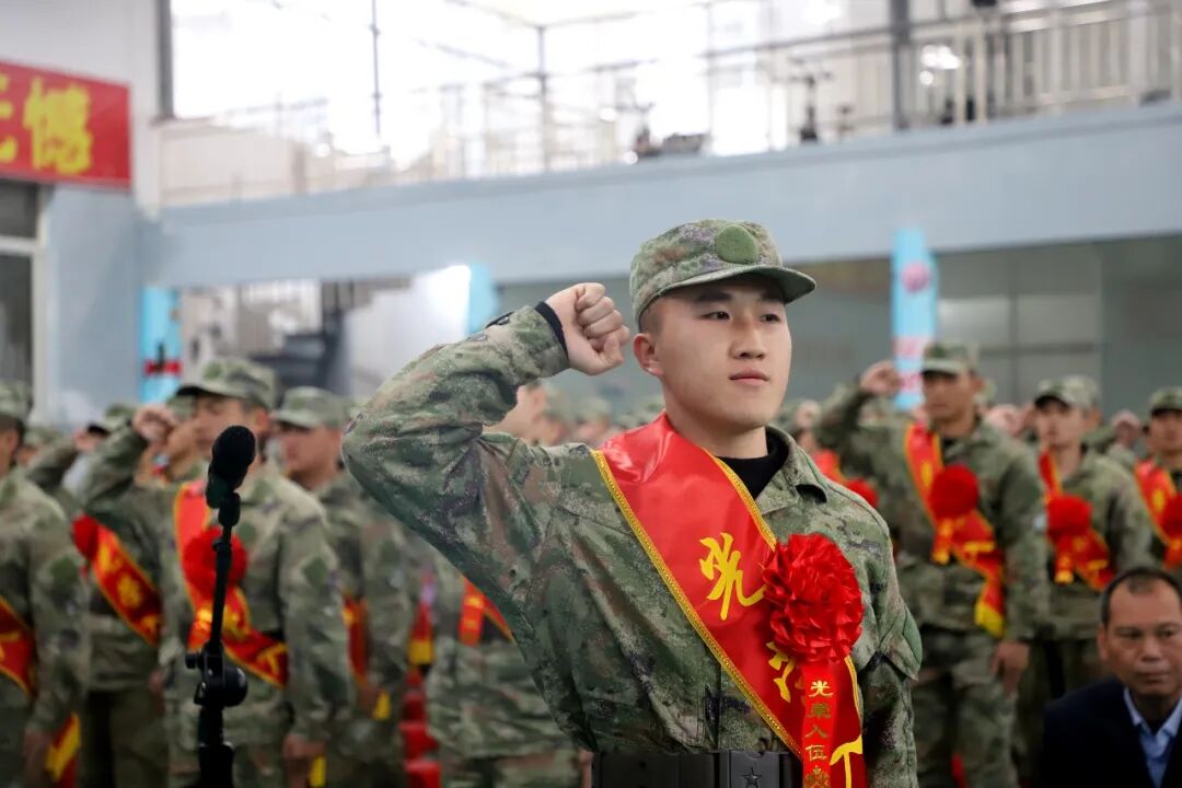 会上,刚入伍的全体新兵整齐列队,在亲友们深情注视与殷切期盼下,举起右拳庄严宣誓。新兵代表和家长代表分别作了发言,诉说从军理想与家国期盼。