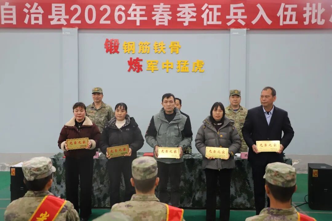 县领导向新兵家庭颁发“光荣之家”荣誉牌匾,并向入伍的大学毕业生发放一次性鼓励金,让尊崇军人、关爱军属的氛围充盈全场。