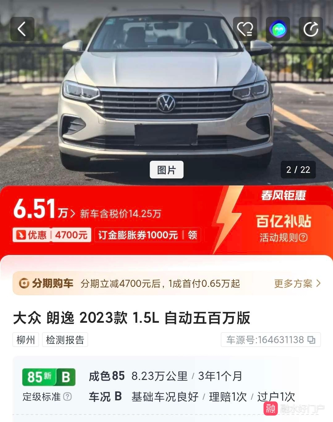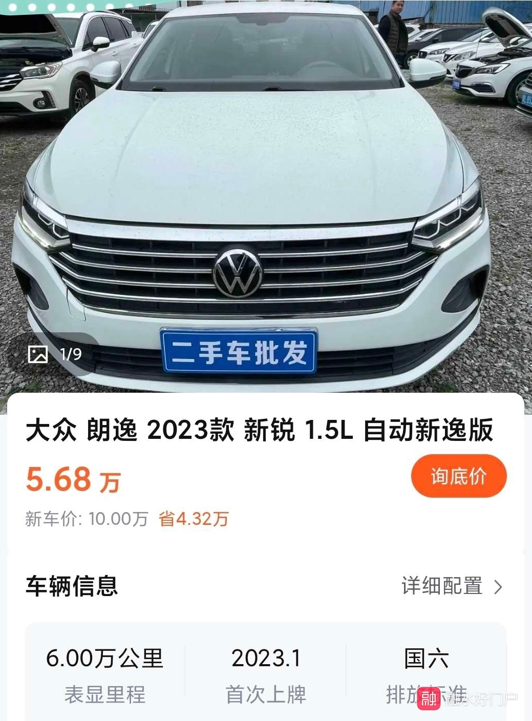 首先我们看到的是车商报的2023款朗逸的价格是5.68