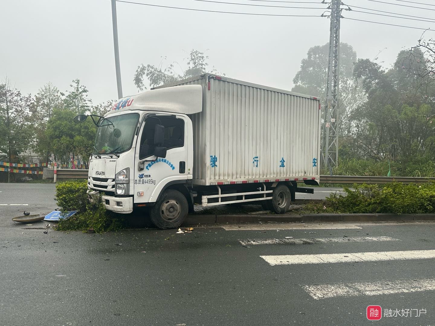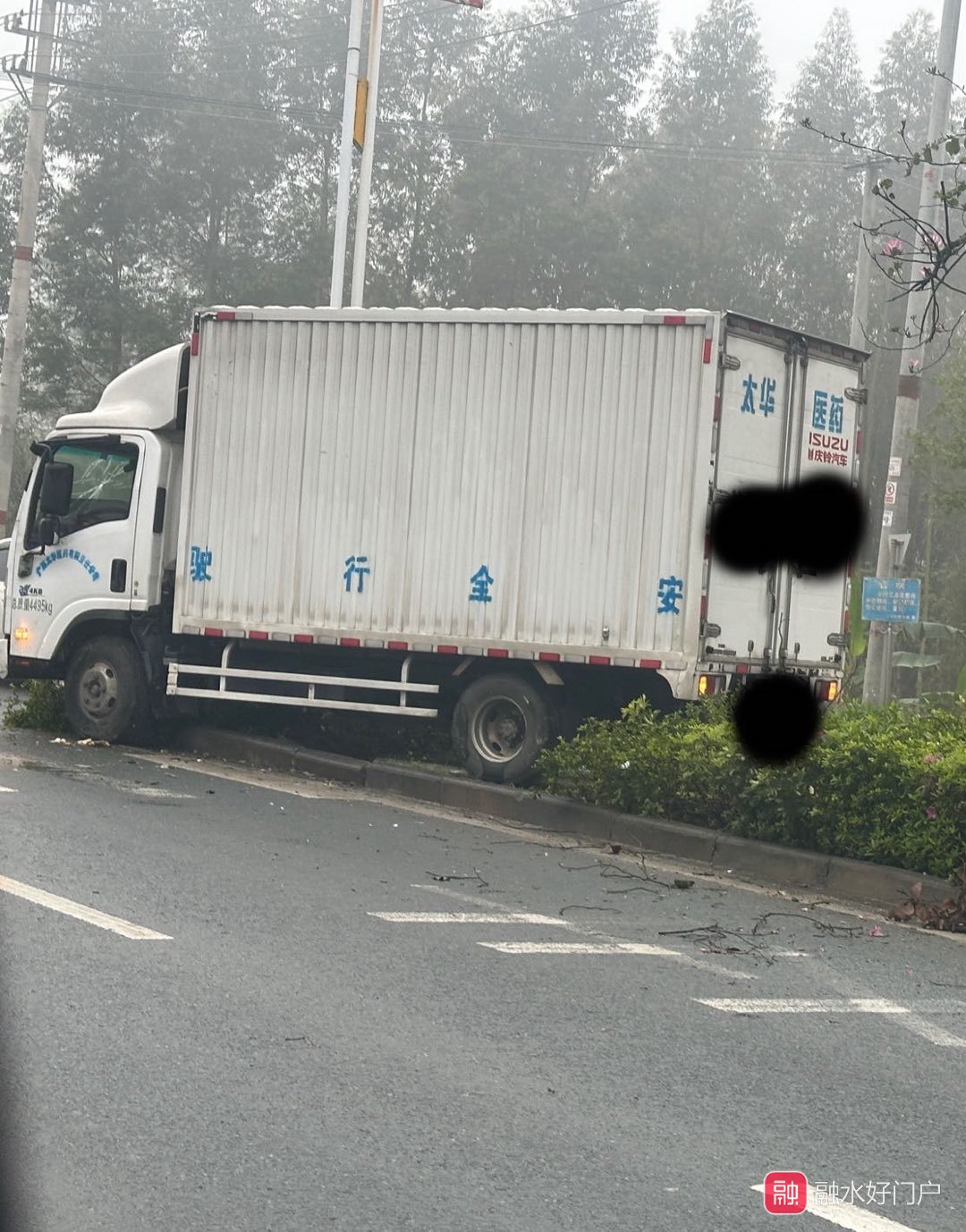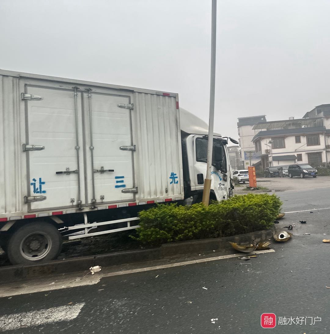 城南大道一辆货车撞上路边绿化带