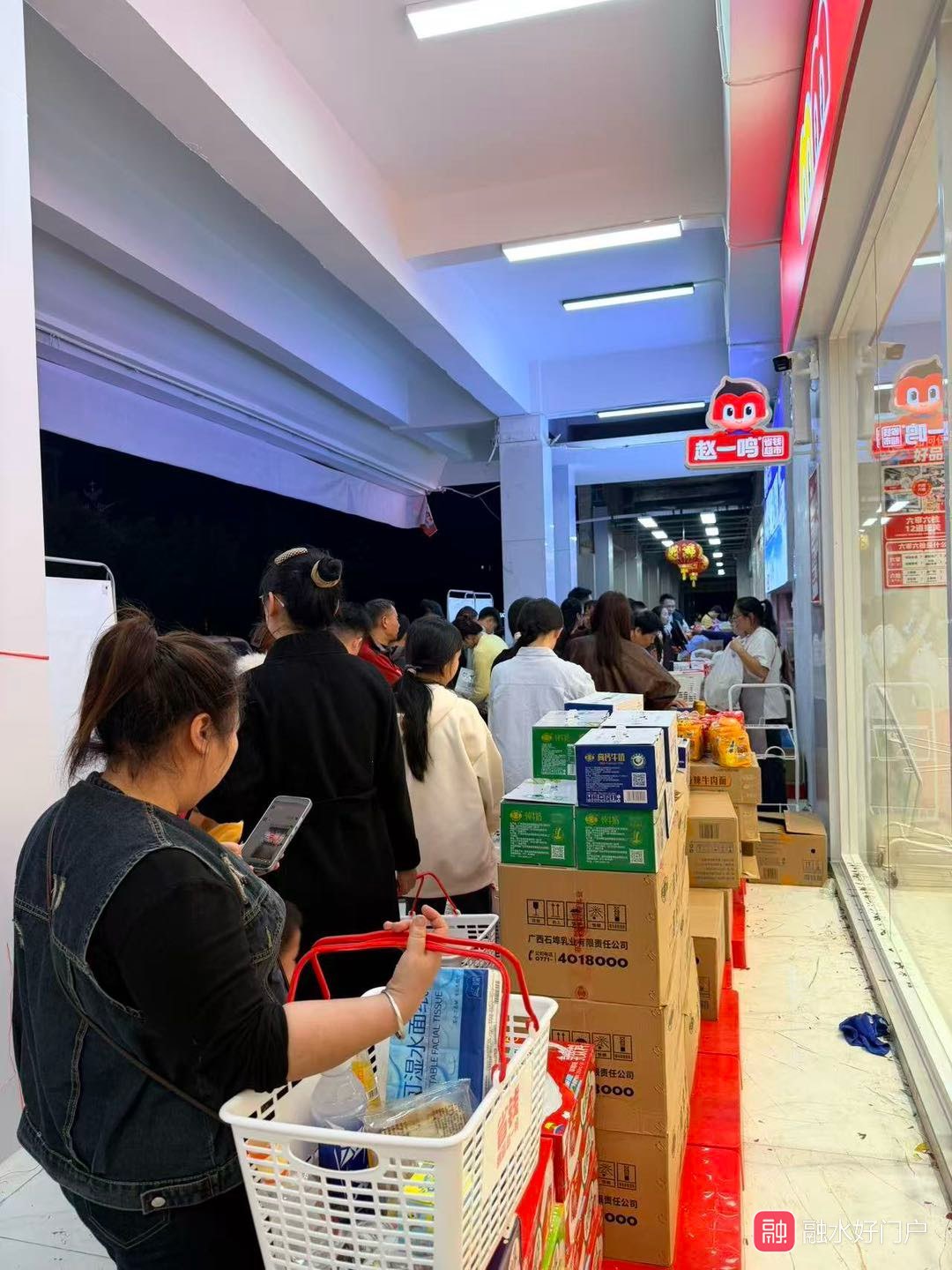 融水这家新开零食店太多人了吧,晚上排队结账排到门口