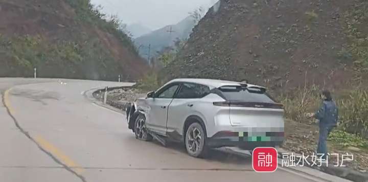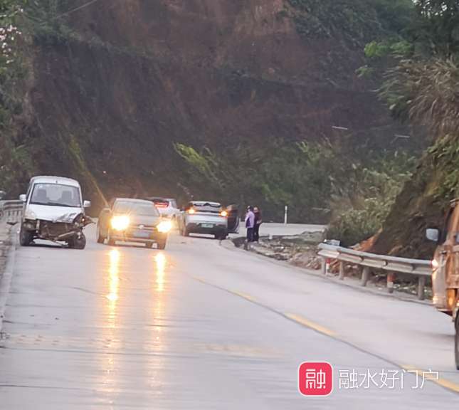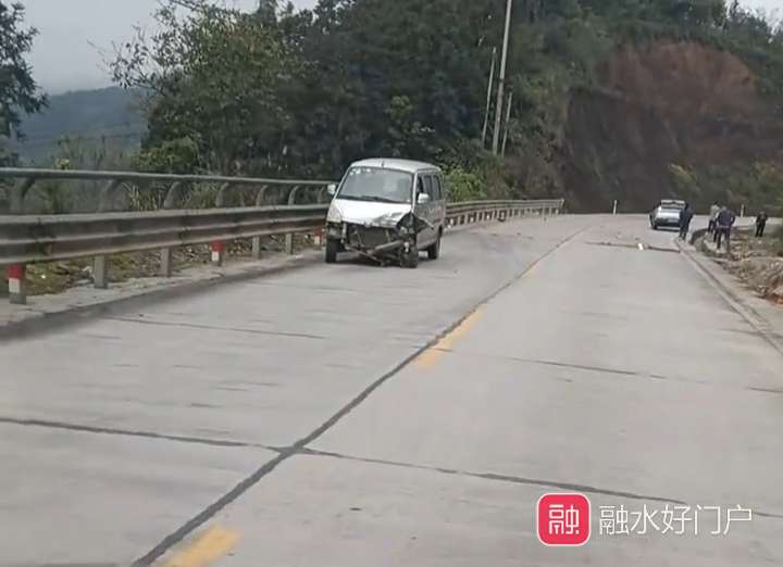 四荣路段发生交通事故,面包车车头撞得稀烂