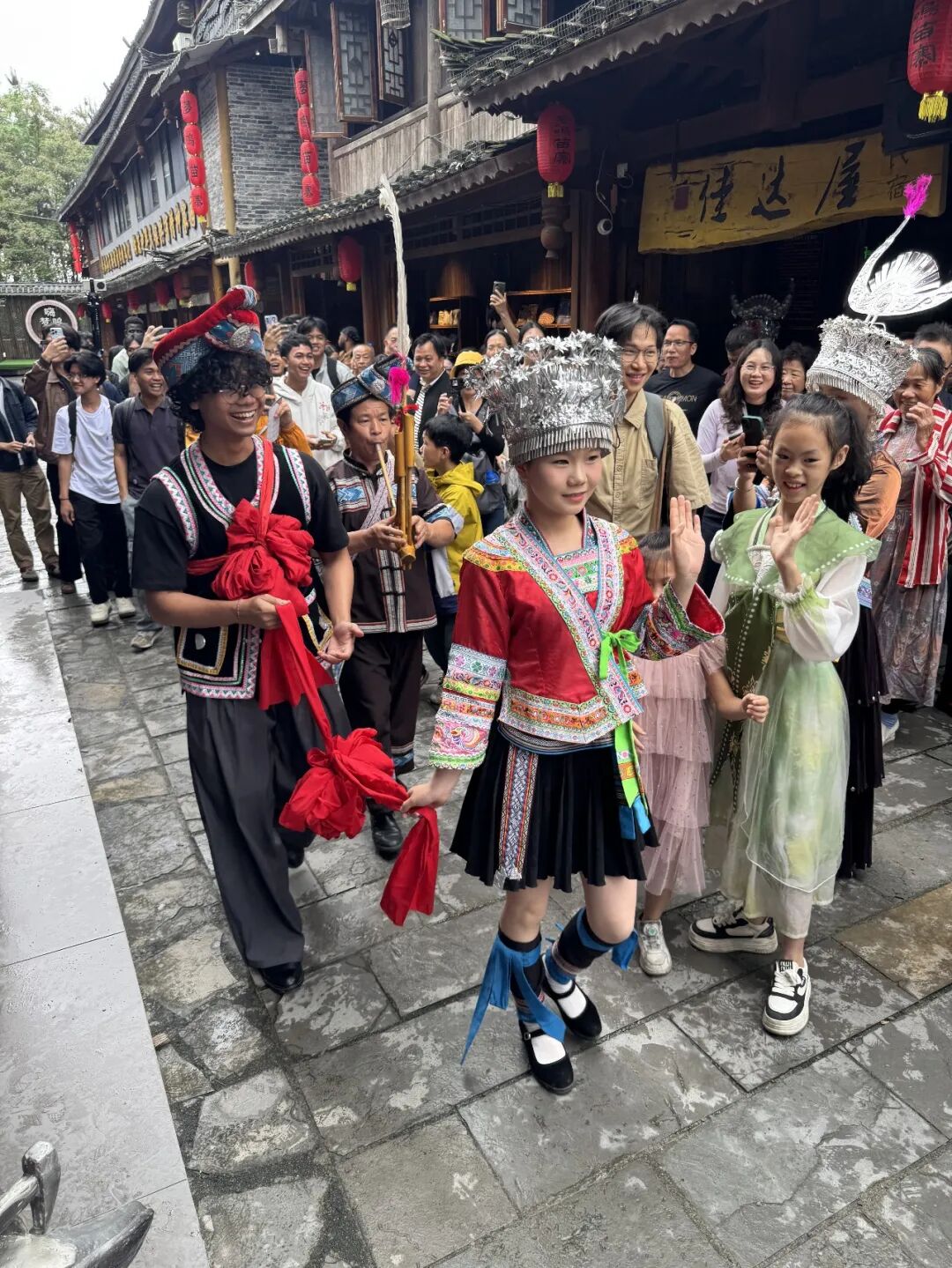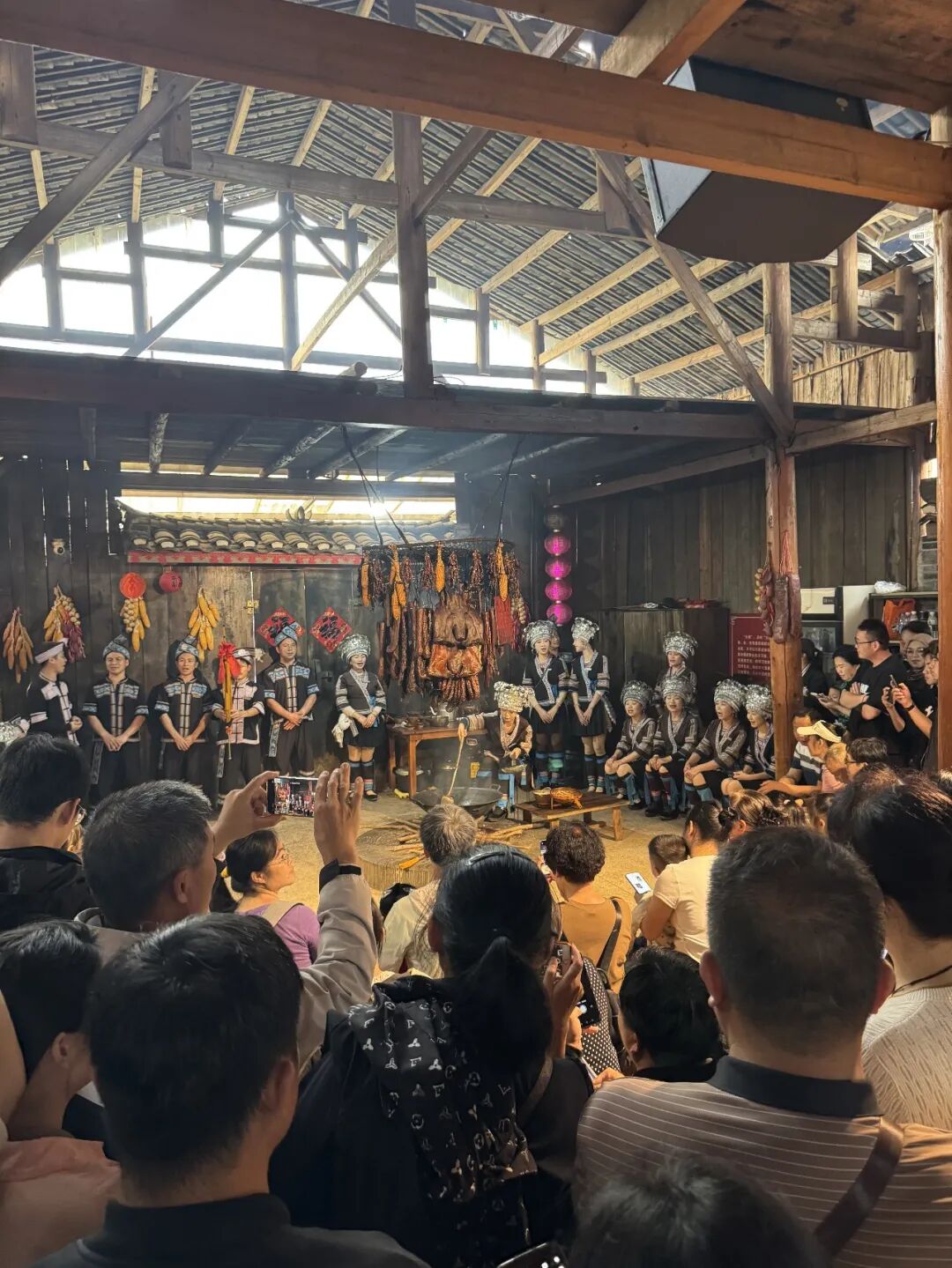 期间,留学生们观看了精彩的民俗表演。寨子里的同胞们身着盛装,载歌载舞,展现出浓郁的民族风情。留学生们积极参与互动,学习民族舞蹈,与游客一同欢唱山歌,感受民族婚礼习俗,还漫步苗寨街巷,深入体验苗寨的生活气息与传统手工艺。