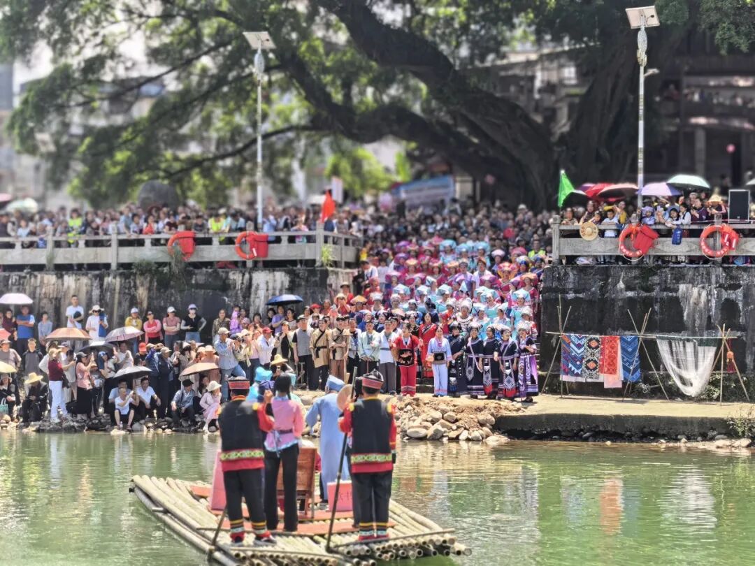 据了解,三防镇是桂北地区持续举办“三月三”歌节的乡镇之一,民俗底蕴深厚。该镇以节为媒、以文化人,历经多年深耕,创新打造《三防刘三姐》河上实景演出并入选全国乡村人才振兴优秀案例,近年来媒体宣传破亿传播,节庆经济带动超百万元,文旅融合和民族团结成效斐然。今年,作为2026年全国春季“村晚”示范展示点,三防镇以国家文化平台为新起点,让壮乡“三月三”成为展现民族风采、凝聚团结力量、赋能乡村振兴的时代典范。4月19日,山歌实景演出、抛绣球、舂糍粑、抓鱼抓鸭抓猪、同年宴、篝火晚会等将精彩继续,广大游客可以继续体验壮乡风情。