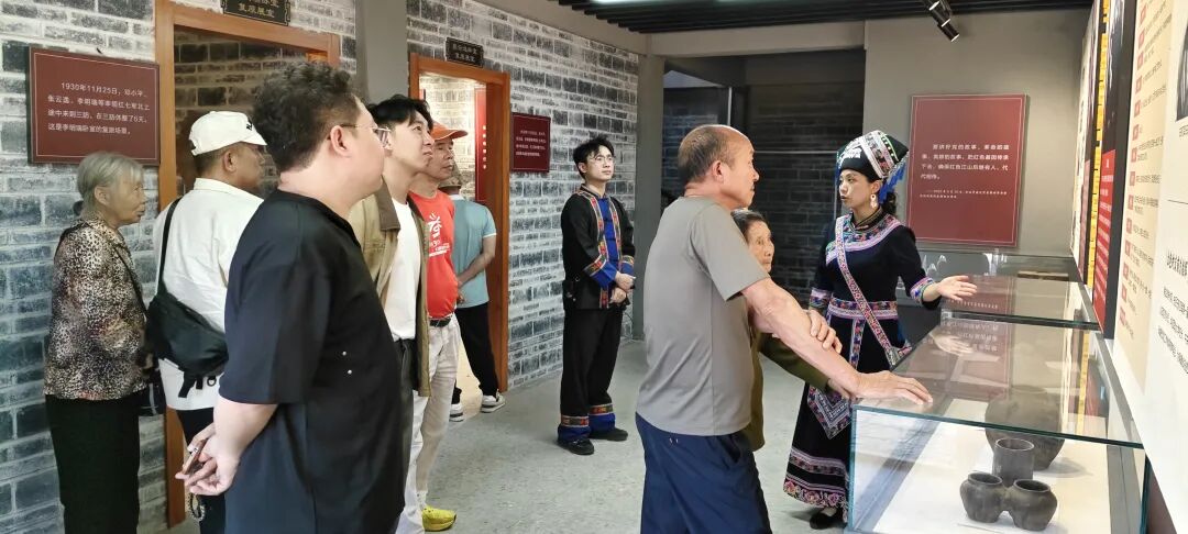 除了热闹的婚礼展演外,不少游客被三防镇红七军革命活动旧址蕴含的红色文化所吸引。讲解员深情讲述1930年邓小平、张云逸率红七军两次驻扎三防的光辉历史,展馆内展示的老物件、老照片让参观者深受感染。